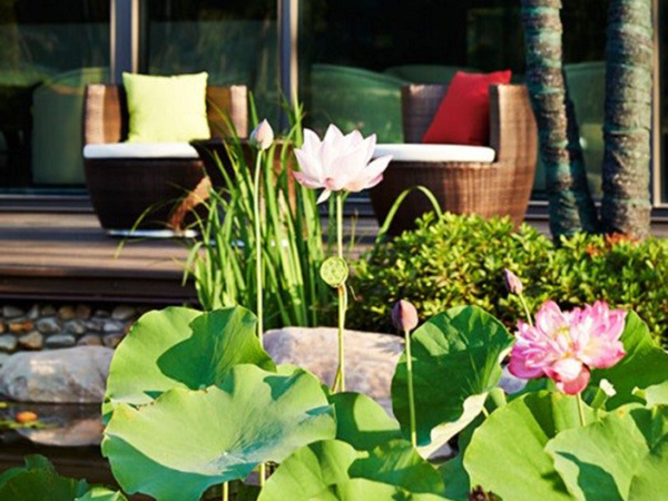 庭院以睡蓮池塘為中心,豐富(fù)茂密的覆層植栽為背景。風吹樹響(xiǎng),潺潺流水,這鬧中取靜的一方密園,讓人充分舒(shū)展身心,淨化心情。